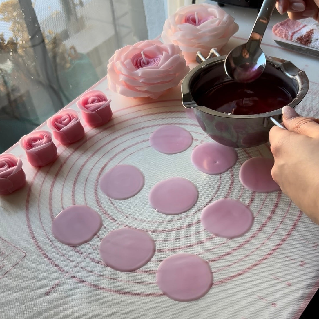 Die Blumenkerzen werden aus 100% reinem Bienenwachs gefertigt. Für bestimmte Kerzen wird dezente Kerzenfarbe verwendet.